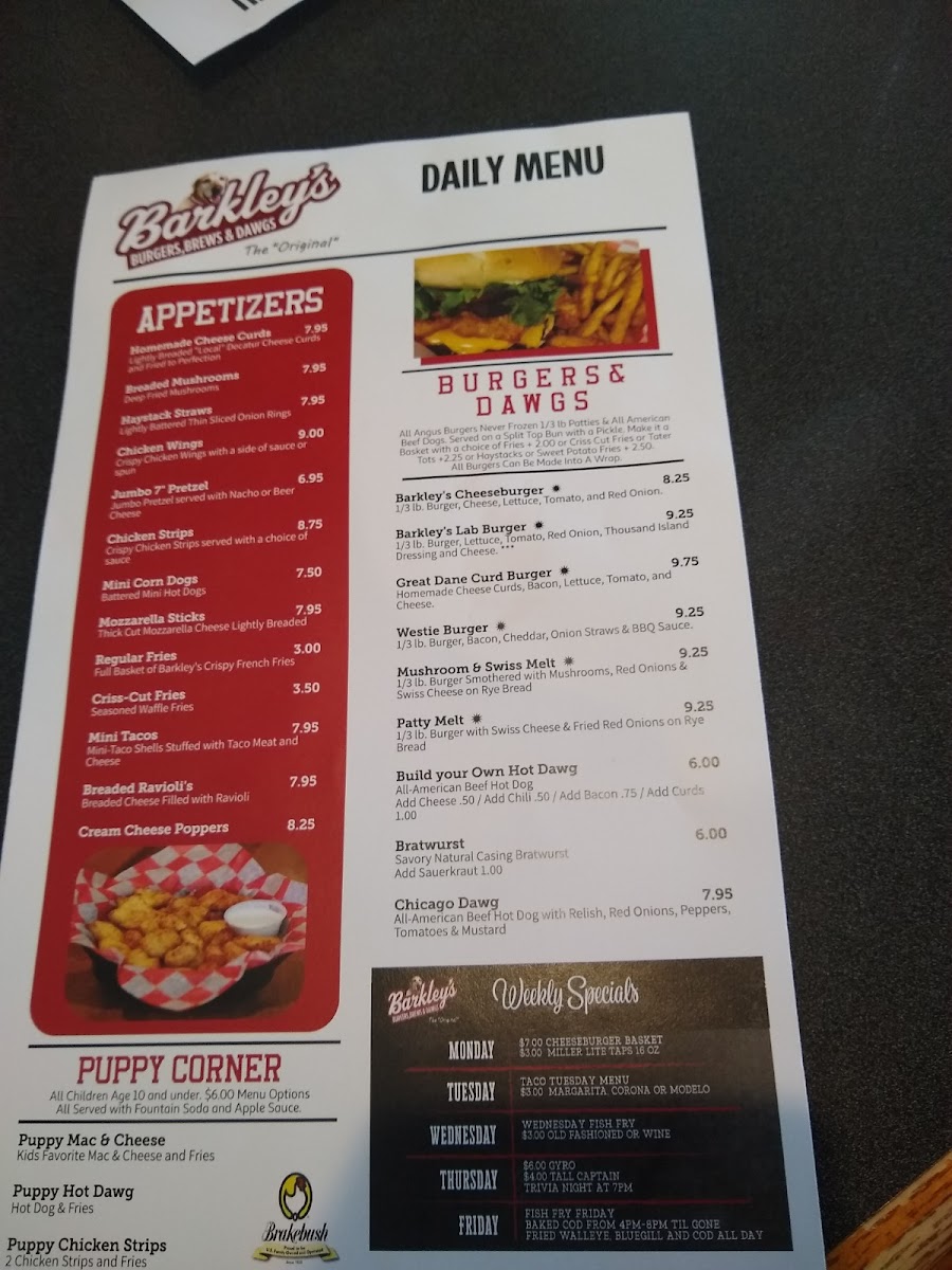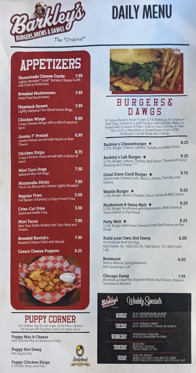Welcome to Barkley's Burgers Brews & Dawgs, a standout eatery located at 2710 W Court St in Janesville, WI. This lively bar and grill has quickly captured the hearts of locals with its inviting atmosphere and delicious offerings. Renowned for their exceptional burgers, including the beloved Irish Setter Reuben Sandwich, every dish is crafted with high-quality, fresh ingredients.
